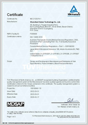 Shenzhen Viatom Technology Co., Ltd completed the Medical Device Single Audit Program and obtained the MDSAP certificate issued by Technischer Überwachungs-Verein.